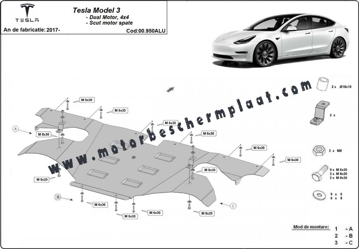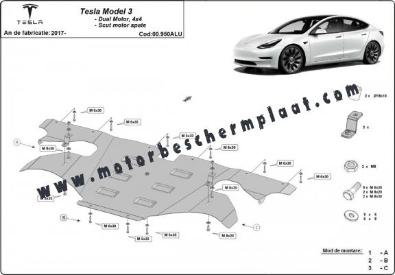 Achterste aluminium bescherming voor elektrische motor – Tesla Model 3 AWD (2017-2026)