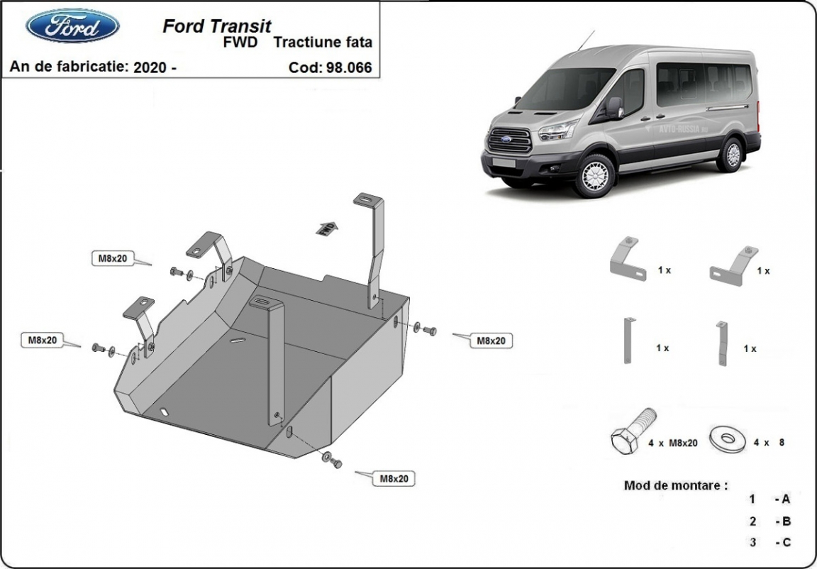 Voor de bescherming van: brandstoftank AdBlue De motor beschermplaat is nieuw en past perfect bij alle versies van Ford Transit geproduceerd tussen 2020 en 2026. Gemaakt van 2 mm dikke Staalplaat. Schroeven, moeren, alle bevestigingsaccessoires zijn inbegrepen. Alle carterbeschermplaten zijn poedergecoat, om corrosie te vermijden. De buitenkant van de carterbeschermplaten heeft staalversterkingen, waardoor de weerstand tegen impact wordt verhoogd. |