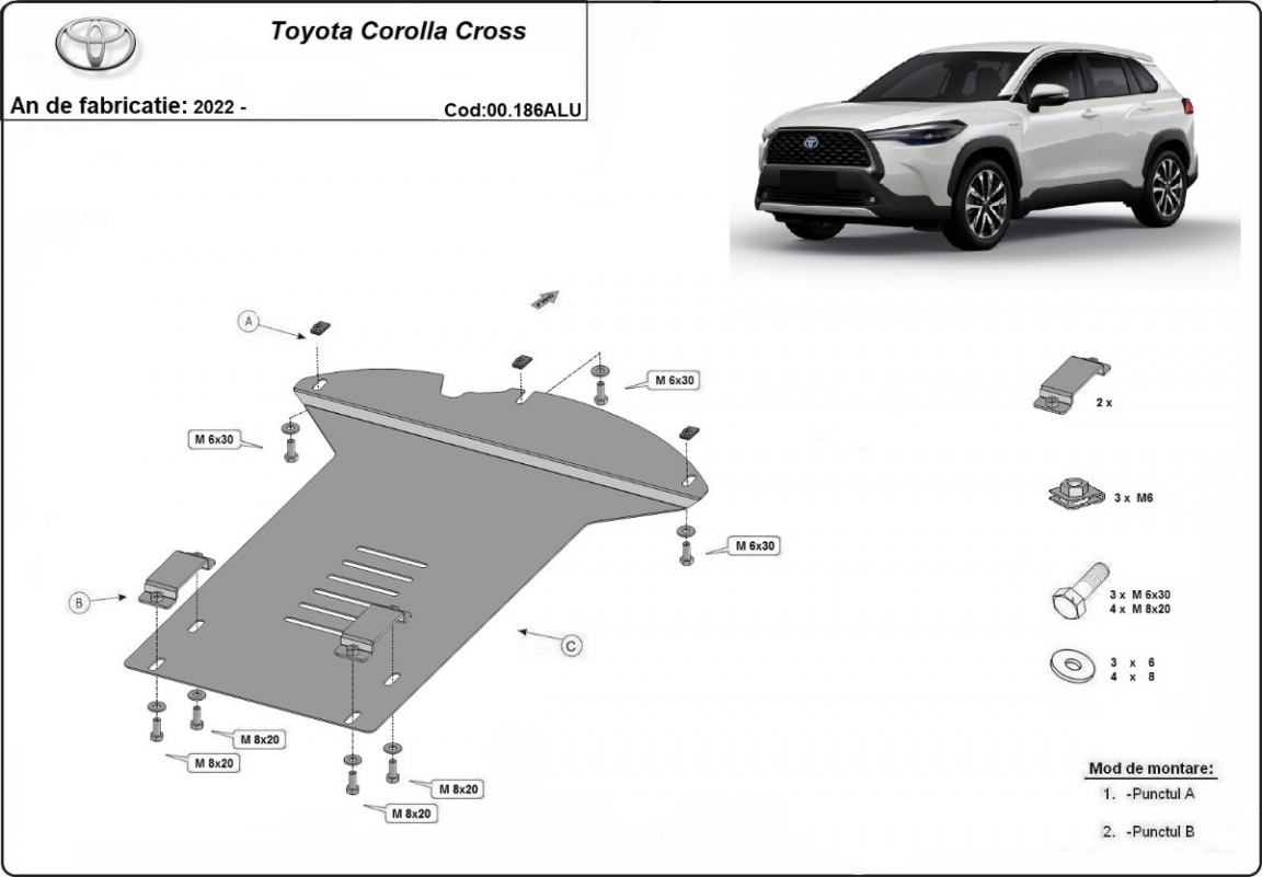 Voor de bescherming van: Katalysator De motor beschermplaat is nieuw en past perfect bij alle versies van Toyota Corolla Cross geproduceerd tussen 2022 en 2026. Gemaakt van 3 mm dikke Aluminiumplaat. De schilden zijn van aluminium, maar de bevestigingssteunen zijn van staal. Schroeven, moeren, alle bevestigingsaccessoires zijn inbegrepen. Alle carterbeschermplaten zijn poedergecoat, om corrosie te vermijden. De buitenkant van de carterbeschermplaten heeft staalversterkingen, waardoor de weerstand tegen impact wordt verhoogd. |