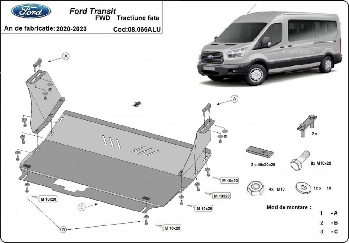 Voor de bescherming van: motor, versnellingsbak, radiator, voorbumper De motor beschermplaat is nieuw en past perfect bij alle versies van Ford Transit geproduceerd tussen 2020 en 2023. Gemaakt van 3 mm dikke Aluminiumplaat. De schilden zijn van aluminium, maar de bevestigingssteunen zijn van staal. Schroeven, moeren, alle bevestigingsaccessoires zijn inbegrepen. Alle carterbeschermplaten zijn poedergecoat, om corrosie te vermijden. De buitenkant van de carterbeschermplaten heeft staalversterkingen, waardoor de weerstand tegen impact wordt verhoogd. |