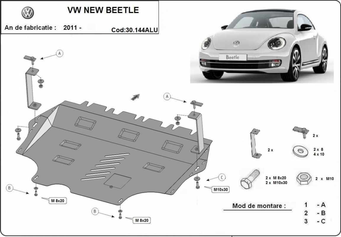 Voor de bescherming van: motor, versnellingsbak, radiator De motor beschermplaat is nieuw en past perfect bij alle versies van Volkswagen New Beetle geproduceerd tussen 2011 en 2017. Gemaakt van 3 mm dikke Aluminiumplaat. De schilden zijn van aluminium, maar de bevestigingssteunen zijn van staal. Schroeven, moeren, alle bevestigingsaccessoires zijn inbegrepen. Alle carterbeschermplaten zijn poedergecoat, om corrosie te vermijden. De buitenkant van de carterbeschermplaten heeft staalversterkingen, waardoor de weerstand tegen impact wordt verhoogd. |