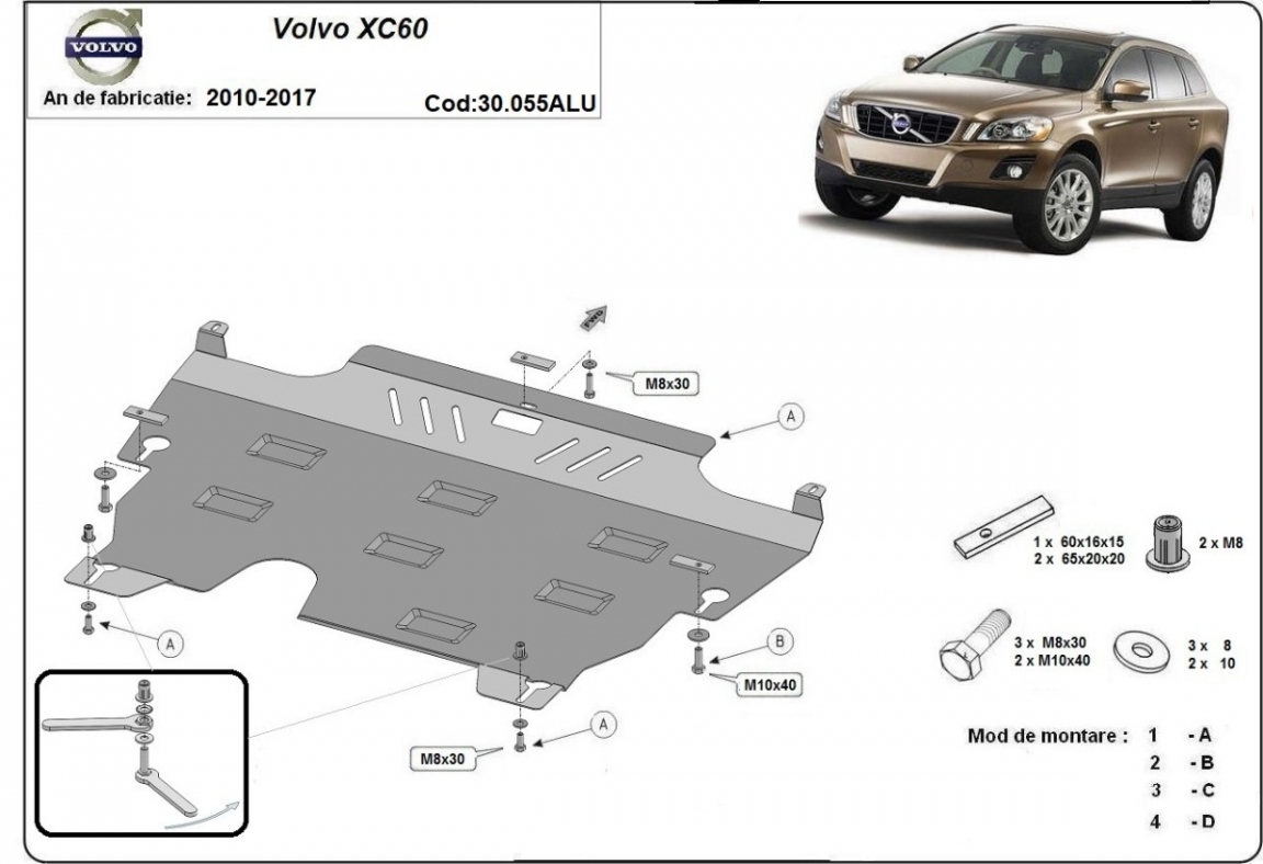 Voor de bescherming van: motor, versnellingsbak, radiator De motor beschermplaat is nieuw en past perfect bij alle versies van Volvo XC60 geproduceerd tussen 2010 en 2017. Gemaakt van 3 mm dikke Aluminiumplaat. De schilden zijn van aluminium, maar de bevestigingssteunen zijn van staal. Schroeven, moeren, alle bevestigingsaccessoires zijn inbegrepen. Alle carterbeschermplaten zijn poedergecoat, om corrosie te vermijden. De buitenkant van de carterbeschermplaten heeft staalversterkingen, waardoor de weerstand tegen impact wordt verhoogd. |