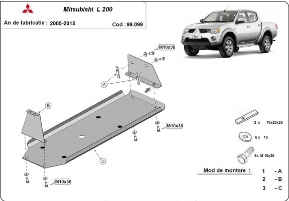 Brandstoftank Beschermplaat voor Mitsubishi L 200 (2005-2015)