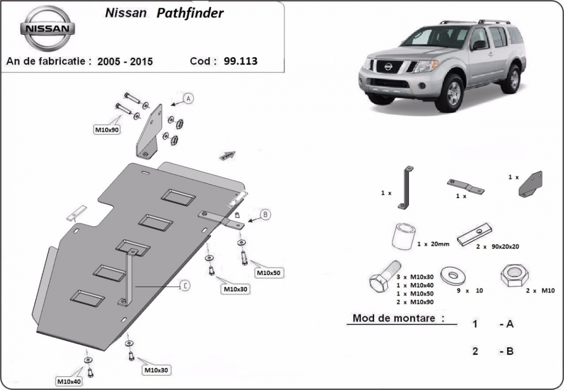 Versnellingsbak en Differentieel Beschermplaat voor Nissan Pathfinder