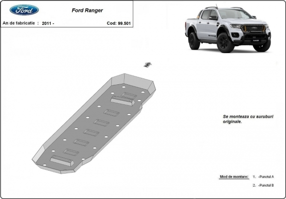 Voor de bescherming van: brandstoftank De motor beschermplaat is nieuw en past perfect bij alle versies van Ford Ranger geproduceerd tussen 2011 en 2023. Gemaakt van 2 mm dikke Staalplaat. Schroeven, moeren, alle bevestigingsaccessoires zijn inbegrepen. Alle carterbeschermplaten zijn poedergecoat, om corrosie te vermijden. De buitenkant van de carterbeschermplaten heeft staalversterkingen, waardoor de weerstand tegen impact wordt verhoogd. |