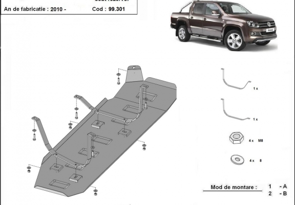 Brandstoftank Beschermplaat voor Volkswagen Amarok - Alleen voor versies zonder fabrieksbescherming