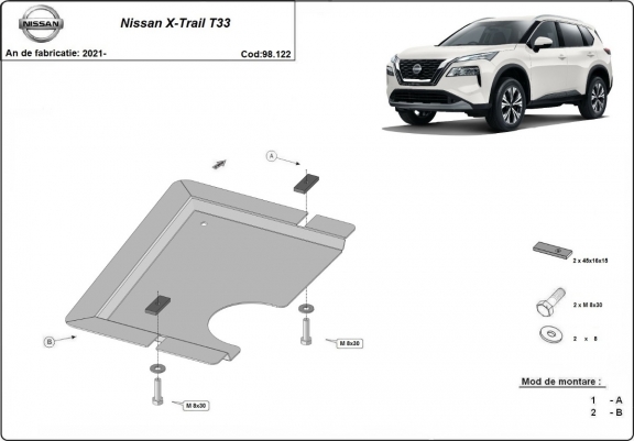 Voor de bescherming van: achterkant differentieel De motor beschermplaat is nieuw en past perfect bij alle versies van Nissan X Trail geproduceerd tussen 2021 en 2026. Gemaakt van 2 mm dikke Staalplaat. Schroeven, moeren, alle bevestigingsaccessoires zijn inbegrepen. Alle carterbeschermplaten zijn poedergecoat, om corrosie te vermijden. De buitenkant van de carterbeschermplaten heeft staalversterkingen, waardoor de weerstand tegen impact wordt verhoogd. |