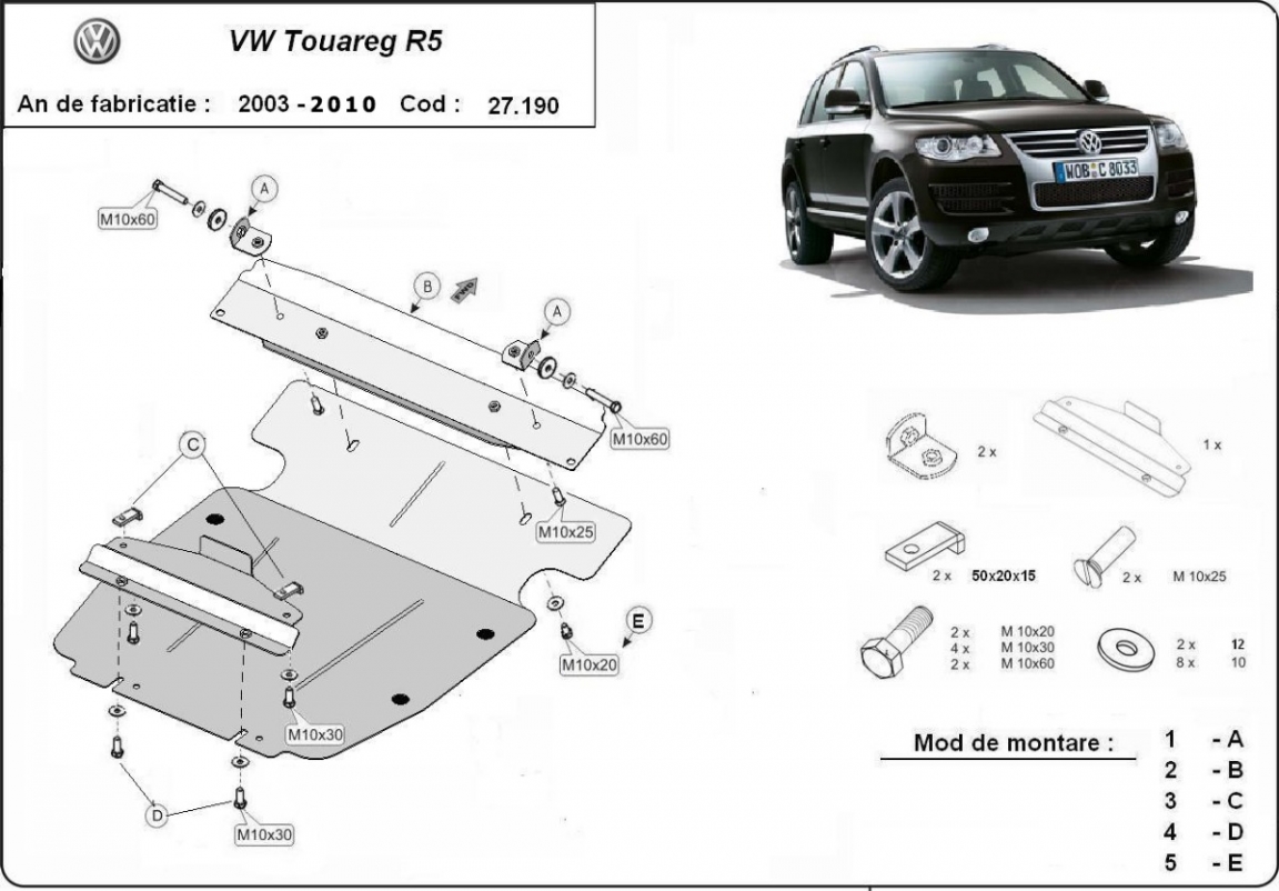 Motor Beschermplaat voor Volkswagen Touareg 7L (2003-2010)
