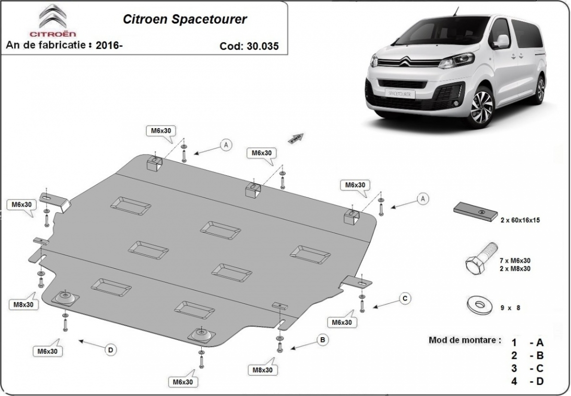 Voor de bescherming van: motor, versnellingsbak, radiator De motor beschermplaat is nieuw en past perfect bij alle versies van Citroen Spacetourer geproduceerd tussen 2016 en 2026. Gemaakt van 2 mm dikke Staalplaat. Schroeven, moeren, alle bevestigingsaccessoires zijn inbegrepen. Alle carterbeschermplaten zijn poedergecoat, om corrosie te vermijden. De buitenkant van de carterbeschermplaten heeft staalversterkingen, waardoor de weerstand tegen impact wordt verhoogd. |