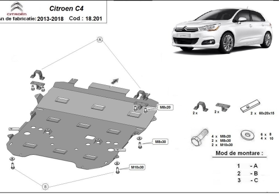 Voor de bescherming van: motor, versnellingsbak, radiator, voorbumper De motor beschermplaat is nieuw en past perfect bij alle versies van Citroen c4 geproduceerd tussen 2013 en 2018. Gemaakt van 2 mm dikke Staalplaat. Schroeven, moeren, alle bevestigingsaccessoires zijn inbegrepen. Alle carterbeschermplaten zijn poedergecoat, om corrosie te vermijden. De buitenkant van de carterbeschermplaten heeft staalversterkingen, waardoor de weerstand tegen impact wordt verhoogd. |