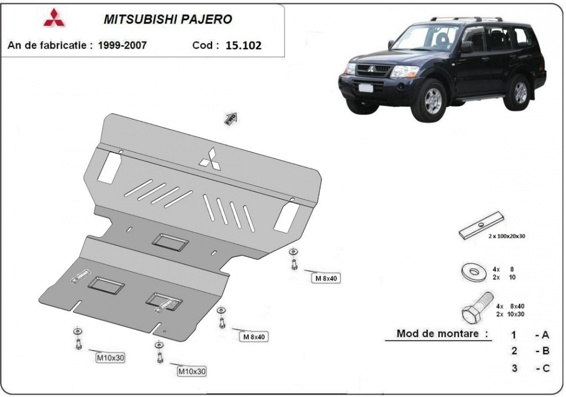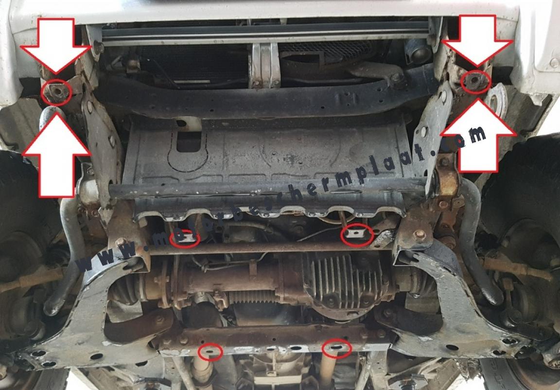Voor de bescherming van: motor, radiator De motor beschermplaat is nieuw en past perfect bij de Mitsubishi Pajero 3 (V60, V70), met de volgende motor / aandrijfversies: 3.5 Gdi; 2.5 Tdi; 3.2 Di-d - geproduceerd tussen 1999 en 2007. Gemaakt van 2,5 mm dikke Staalplaat. Schroeven, moeren, alle bevestigingsaccessoires zijn inbegrepen. Alle carterbeschermplaten zijn poedergecoat, om corrosie te vermijden. De buitenkant van de carterbeschermplaten heeft staalversterkingen, waardoor de weerstand tegen impact wordt verhoogd. |