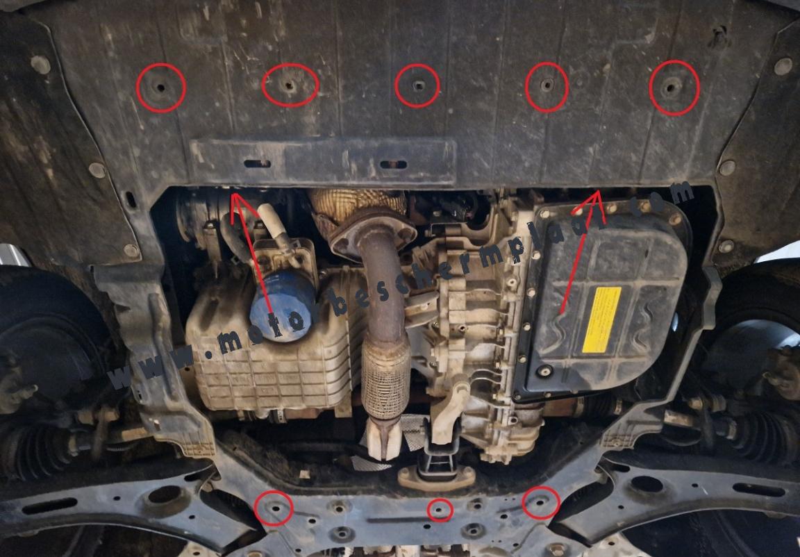 | Het monteren van de carterbeschermplaat eist geen wijzigingen aan de voertuigstructuur. |