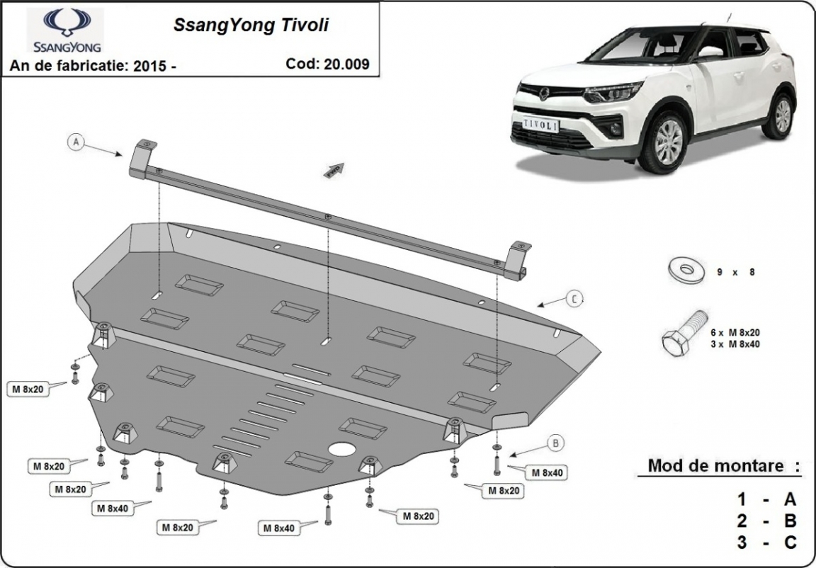 Motor en Radiator Beschermplaat voor SsangYong Tivoli (2015-2023)