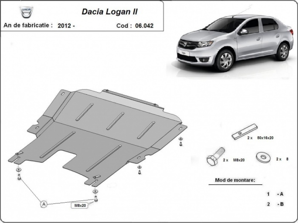 Motor en Versnellingsbak Beschermplaat voor Dacia Logan 2 (2012-2020)