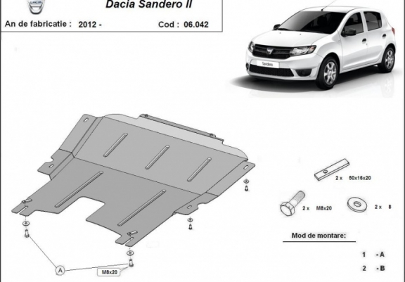 Motor en Versnellingsbak Beschermplaat voor Dacia Sandero 2 (2012-2020)