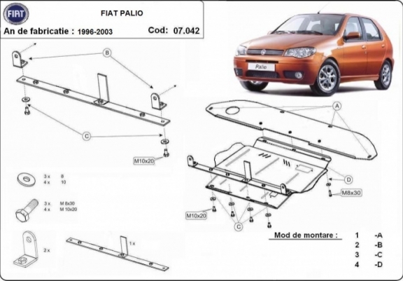 Motor en Versnellingsbak Beschermplaat voor Fiat Palio (1996-2003)