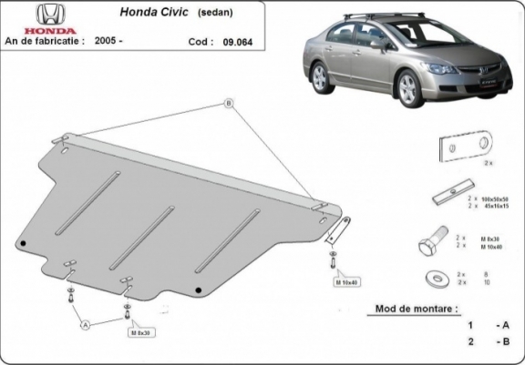 Motor en Versnellingsbak Beschermplaat voor Honda Civic (berlin) (2005-2015)