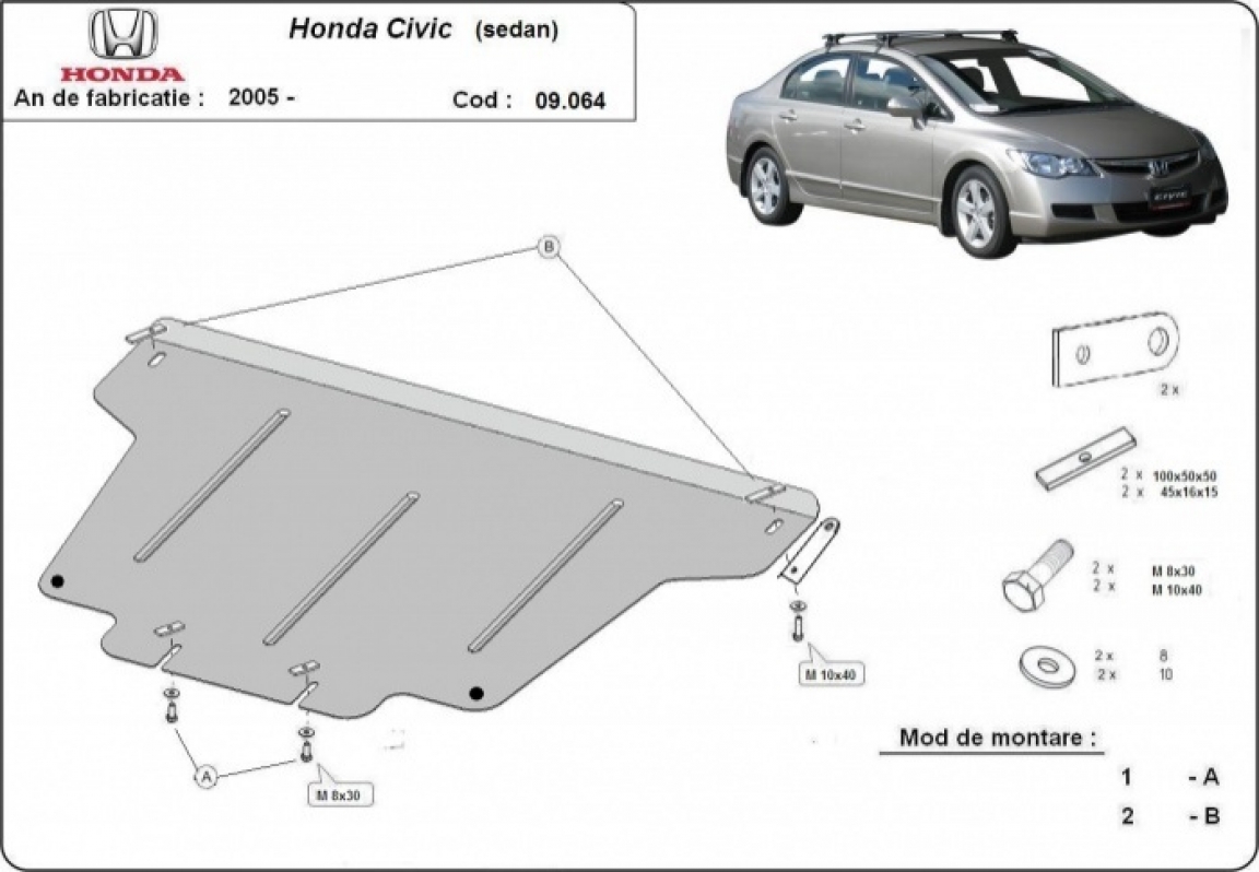 Voor de bescherming van: motor, versnellingsbak De motor beschermplaat is nieuw en past perfect bij alle versies van Honda Civic (berlin) geproduceerd tussen 2005 en 2015. Gemaakt van 2 mm dikke Staalplaat. Schroeven, moeren, alle bevestigingsaccessoires zijn inbegrepen. Alle carterbeschermplaten zijn poedergecoat, om corrosie te vermijden. De buitenkant van de carterbeschermplaten heeft staalversterkingen, waardoor de weerstand tegen impact wordt verhoogd. |