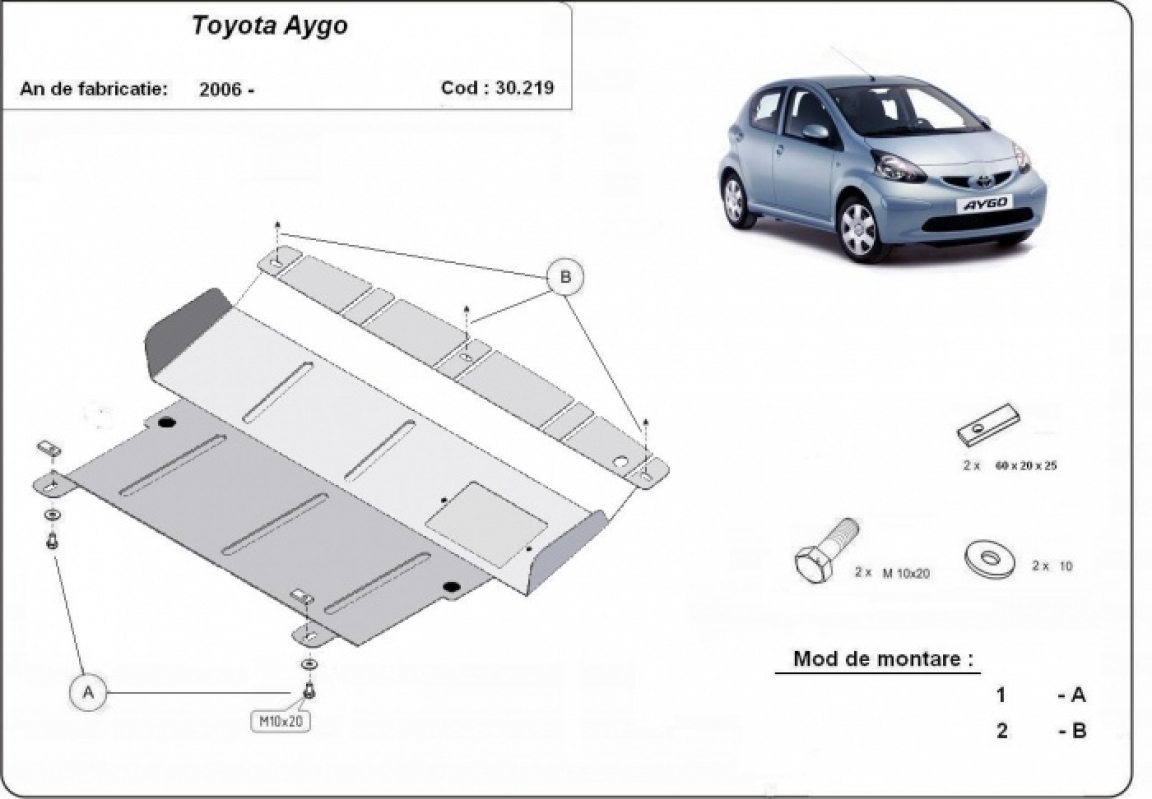 Motor en Versnellingsbak Beschermplaat voor Toyota Aygo AB10 (2005-2014)