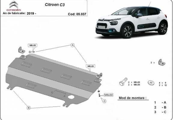 El cubre carter para C3 2019 es de muy buena calidad y estaría muy bien que los tornillos fueran un poco más largos los que trae se quedan cortos. Y otra cosa creo que es muy importante sería que en el kit de montaje incluya unas arandelas de goma gruesas por que cundo lo montas, metal con metal y circulas parece que vas en moto. Ya me paso con otro cubre carter que compre para otro C3 del 2005 y en los dos coches he tenido que poner arandelas de goma gruesas. Por lo demás muy satisfecho encajan muy bien. Gracias