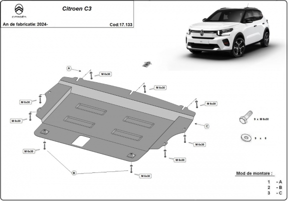 Motor en Versnellingsbak Beschermplaat voor Citroen C3 (2024-2026)