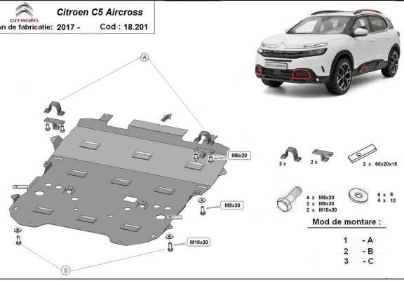 Motor en Versnellingsbak Beschermplaat voor Citroen C5 Aircross (2017-2026)