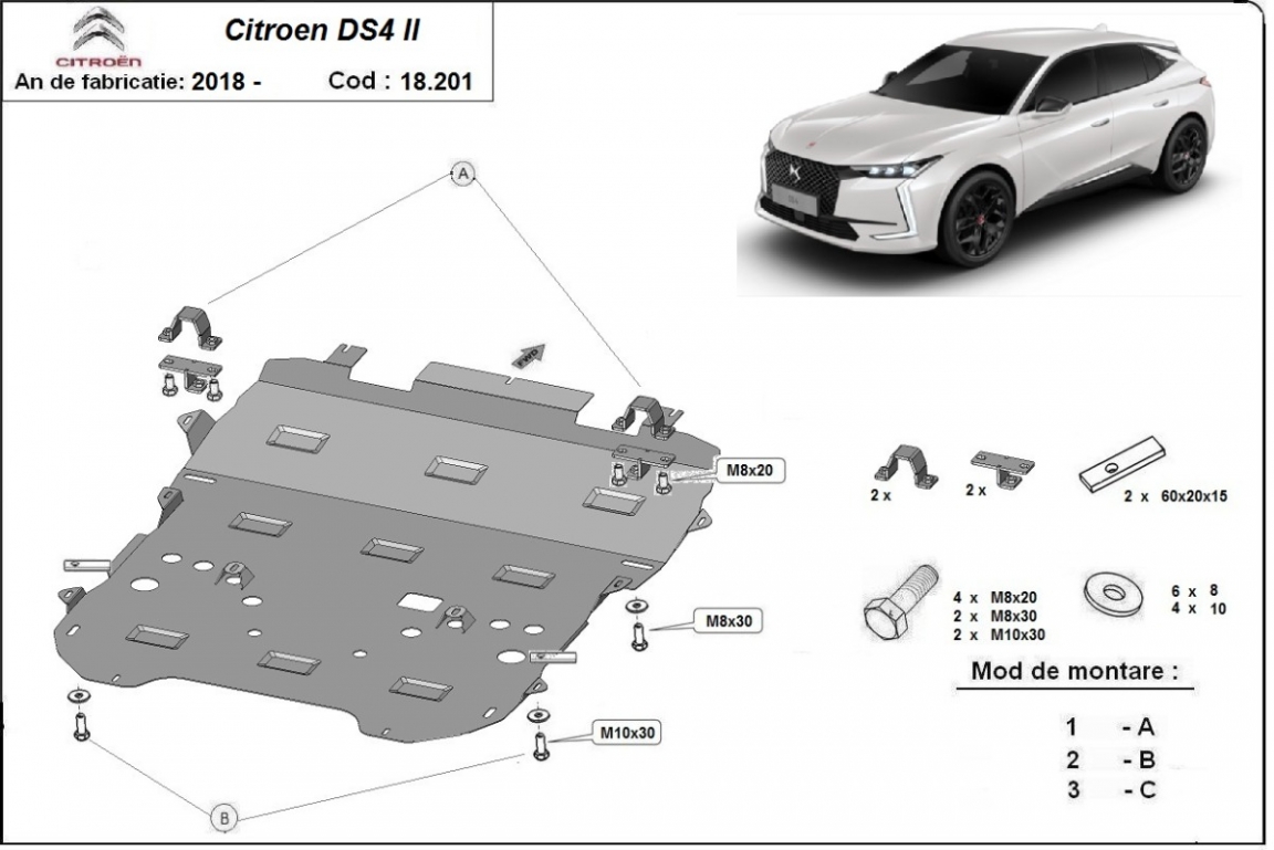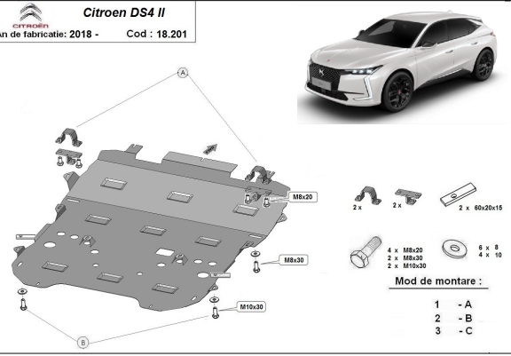 Voor de bescherming van: motor, versnellingsbak, radiator, voorbumper De motor beschermplaat is nieuw en past perfect bij alle versies van Citroen DS4 geproduceerd tussen 2021 en 2026. Gemaakt van 2 mm dikke Staalplaat. Schroeven, moeren, alle bevestigingsaccessoires zijn inbegrepen. Alle carterbeschermplaten zijn poedergecoat, om corrosie te vermijden. De buitenkant van de carterbeschermplaten heeft staalversterkingen, waardoor de weerstand tegen impact wordt verhoogd. |
