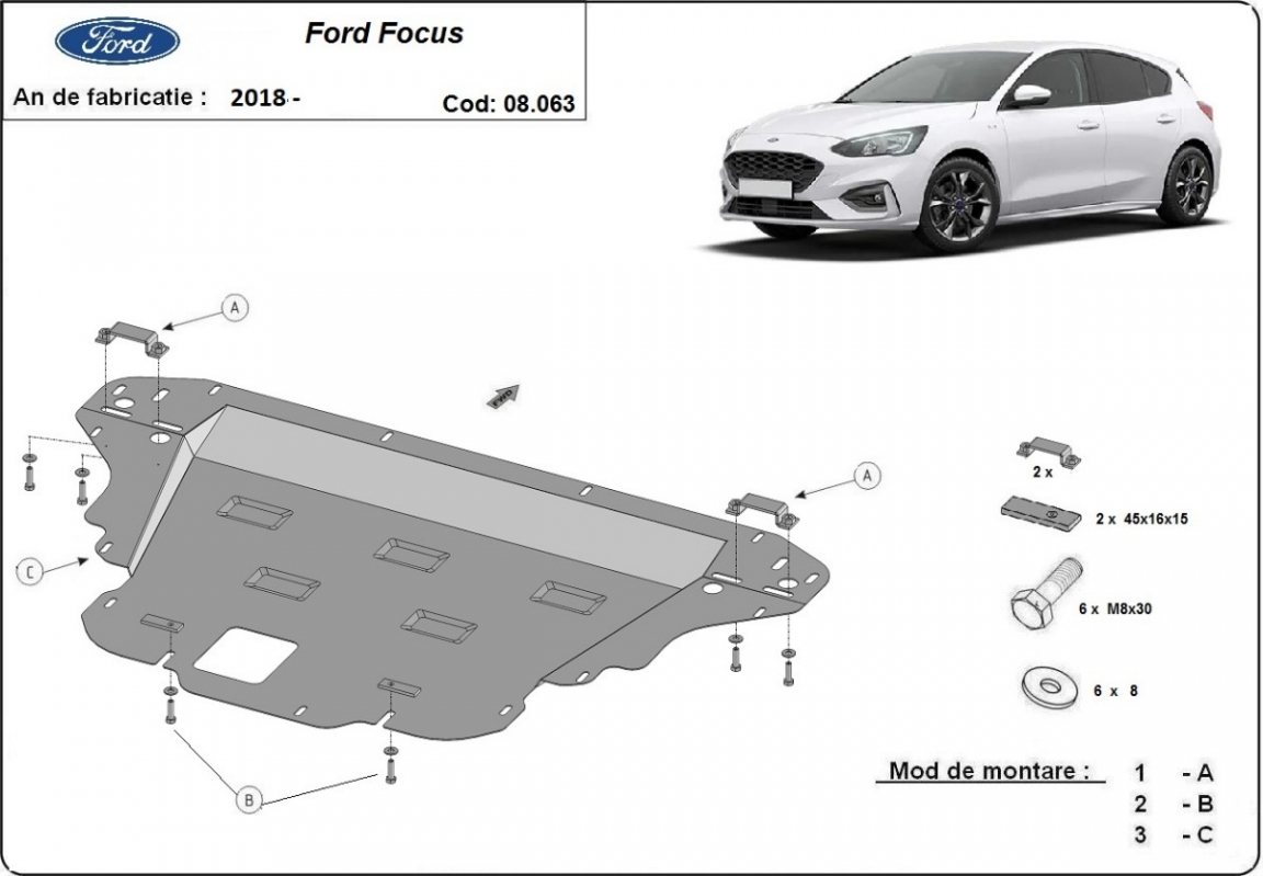 Voor de bescherming van: motor, versnellingsbak, radiator, voorbumper De motor beschermplaat is nieuw en past perfect bij alle versies van Ford Focus 4 geproduceerd tussen 2018 en 2026. Gemaakt van 2 mm dikke Staalplaat. Schroeven, moeren, alle bevestigingsaccessoires zijn inbegrepen. Alle carterbeschermplaten zijn poedergecoat, om corrosie te vermijden. De buitenkant van de carterbeschermplaten heeft staalversterkingen, waardoor de weerstand tegen impact wordt verhoogd. |