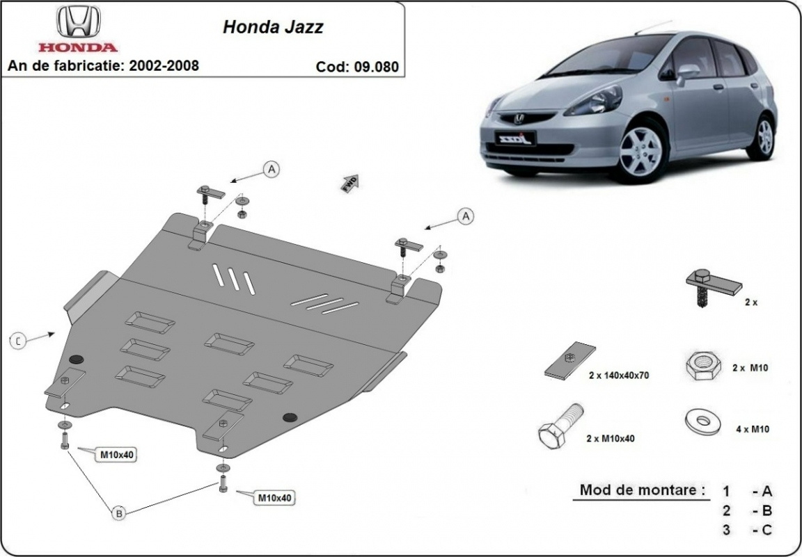 Voor de bescherming van: motor, radiator, voorbumper De motor beschermplaat is nieuw en past perfect bij alle versies van Honda Jazz geproduceerd tussen 2002 en 2008. Gemaakt van 2 mm dikke Staalplaat. Schroeven, moeren, alle bevestigingsaccessoires zijn inbegrepen. Alle carterbeschermplaten zijn poedergecoat, om corrosie te vermijden. De buitenkant van de carterbeschermplaten heeft staalversterkingen, waardoor de weerstand tegen impact wordt verhoogd. |