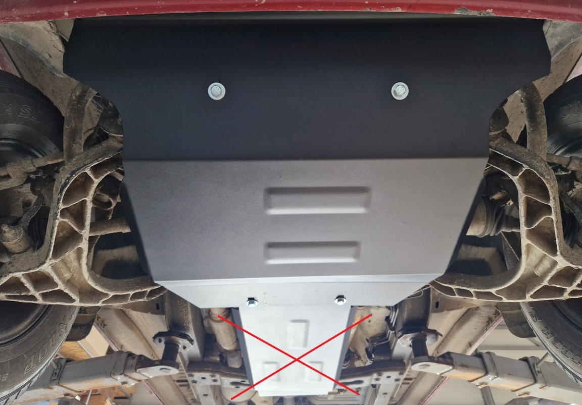 | Het monteren van de carterbeschermplaat eist geen wijzigingen aan de voertuigstructuur. |