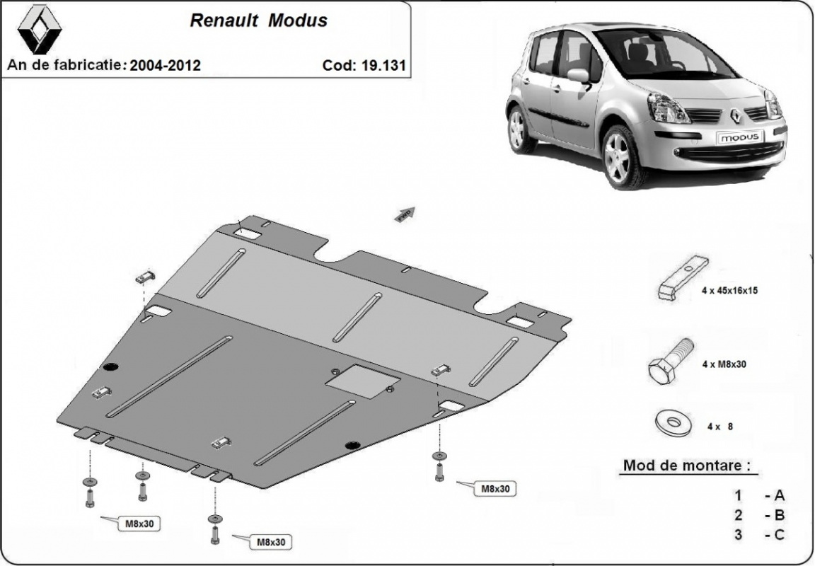 Motor en Versnellingsbak Beschermplaat voor Renault Modus (2004-2012)