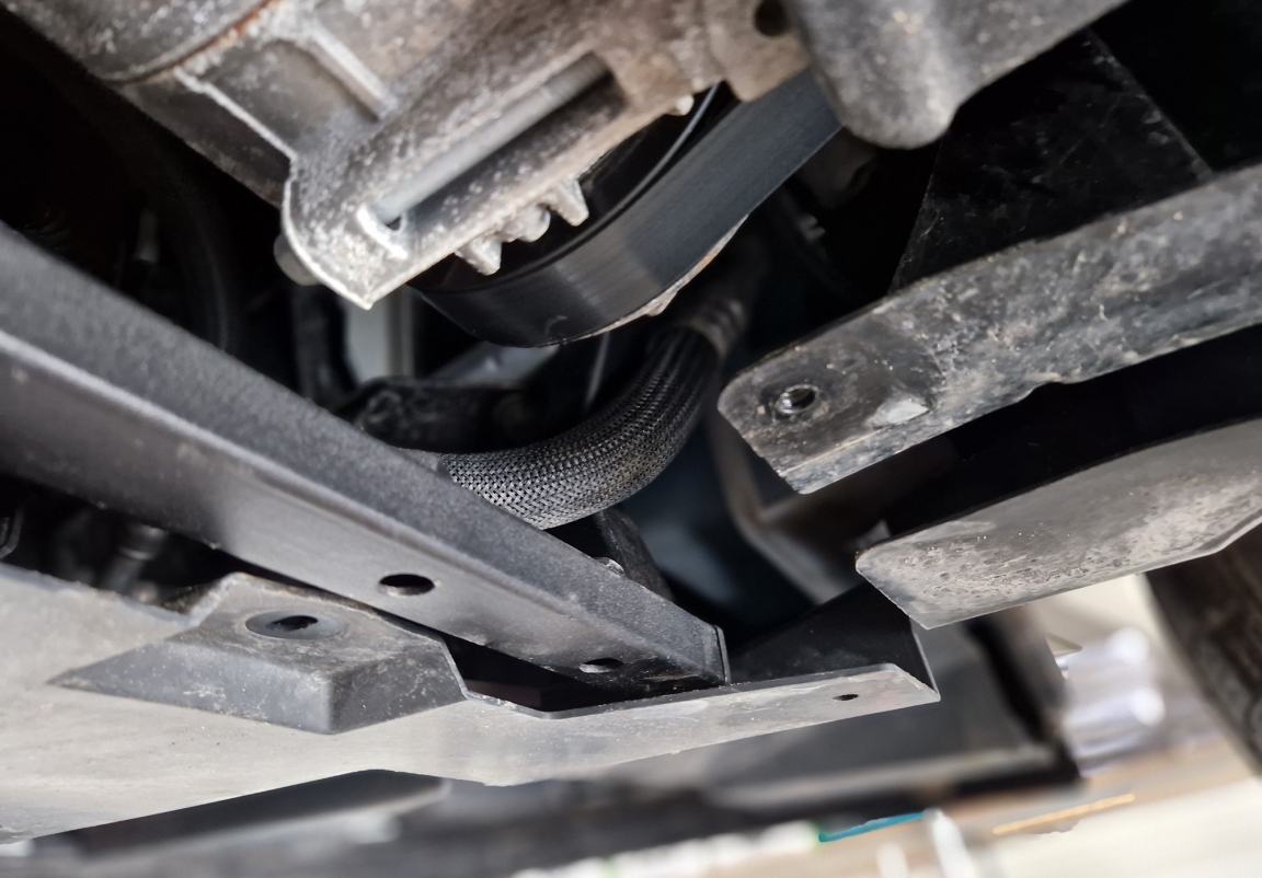 | Het monteren van de carterbeschermplaat eist geen wijzigingen aan de voertuigstructuur. |