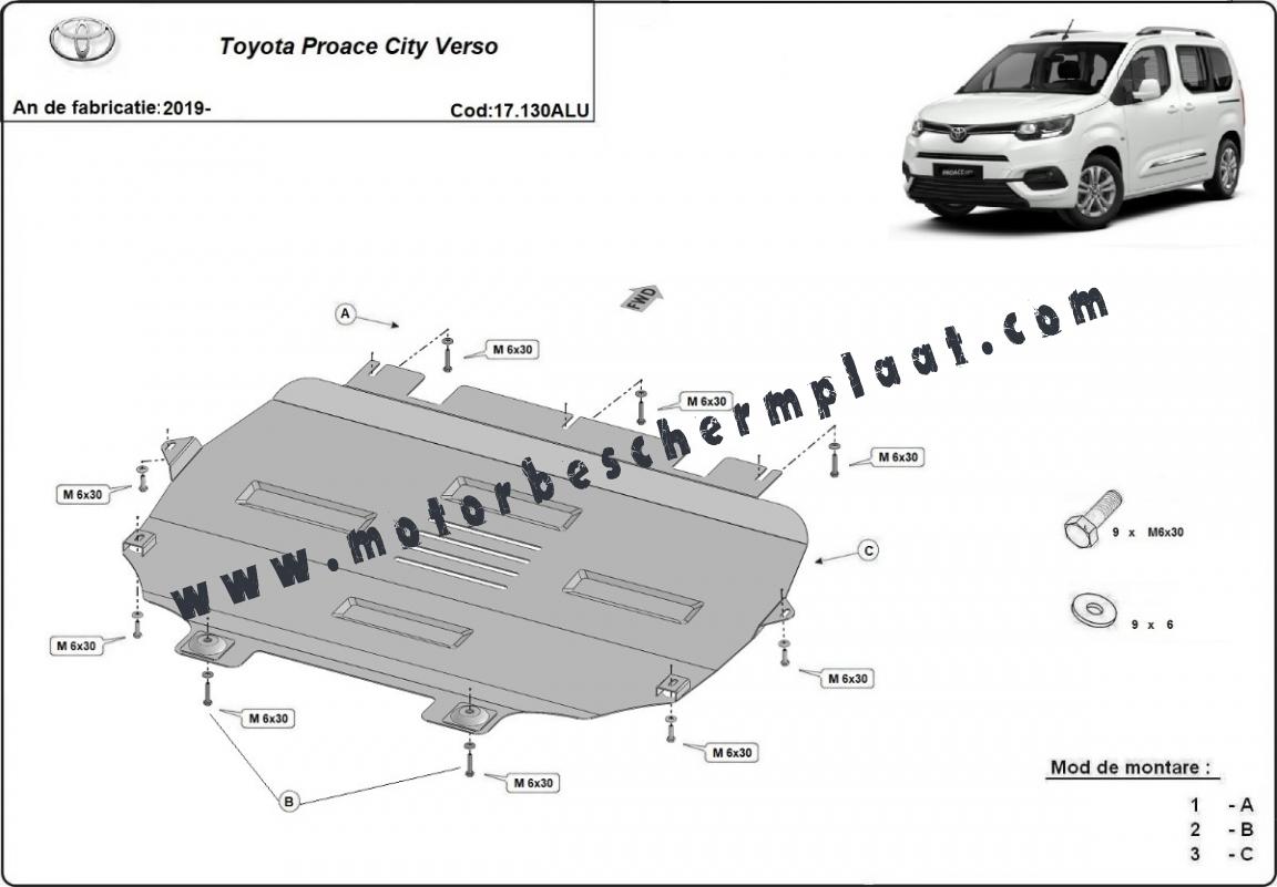Motor en Versnellingsbak Beschermplaat voor Toyota Proace City Verso - Aluminium (2019-2026)