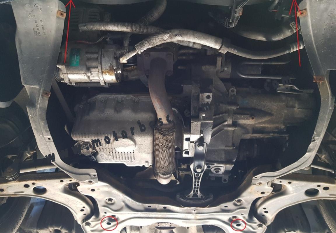 | Het monteren van de carterbeschermplaat eist geen wijzigingen aan de voertuigstructuur. |