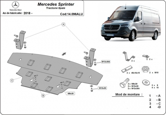 Motor, Versnellingsbak en Radiator aluminium Beschermplaat voor Mercedes Sprinter - RWD (2018-2026)