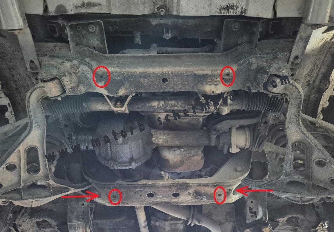 | Het monteren van de carterbeschermplaat eist geen wijzigingen aan de voertuigstructuur. |
