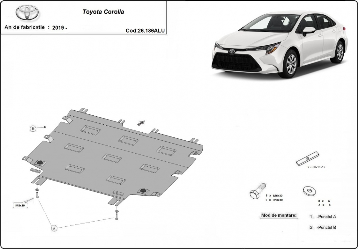 Voor de bescherming van: motor, versnellingsbak De motor beschermplaat is nieuw en past perfect bij alle versies van Toyota Corolla geproduceerd tussen 2019 en 2026. Gemaakt van 3 mm dikke Aluminiumplaat. De schilden zijn van aluminium, maar de bevestigingssteunen zijn van staal. Schroeven, moeren, alle bevestigingsaccessoires zijn inbegrepen. Alle carterbeschermplaten zijn poedergecoat, om corrosie te vermijden. De buitenkant van de carterbeschermplaten heeft staalversterkingen, waardoor de weerstand tegen impact wordt verhoogd. |