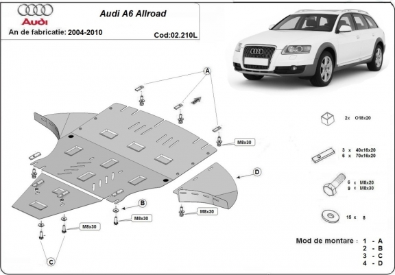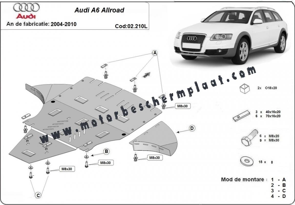 Motor, Versnellingsbak en Radiator Beschermplaat voor Audi A6 Allroad 2 - avec latéraux (2005-2011)