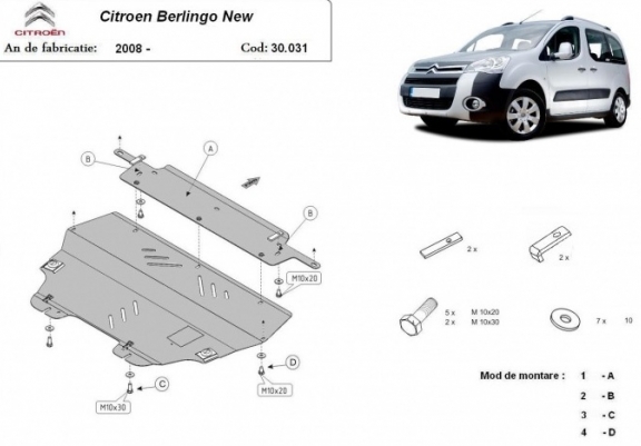 Motor, Versnellingsbak en Radiator Beschermplaat voor Citroen Berlingo