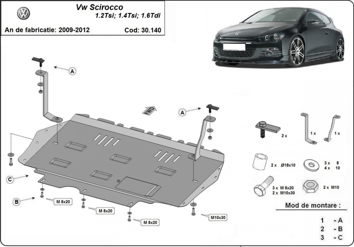 Voor de bescherming van: motor, versnellingsbak, radiator De motor beschermplaat is nieuw en past perfect bij de Volkswagen Scirocco, met de volgende motor / aandrijfversies: 1.2,2.0TSI, 2.0TDI - geproduceerd tussen 2008 en 2017. Het heeft een opening voor de oliecarter, dus hoeft het niet verwijderd worden bij olieverversing. Gemaakt van 2 mm dikke Staalplaat. Schroeven, moeren, alle bevestigingsaccessoires zijn inbegrepen. Alle carterbeschermplaten zijn poedergecoat, om corrosie te vermijden. De buitenkant van de carterbeschermplaten heeft staalversterkingen, waardoor de weerstand tegen impact wordt verhoogd. |