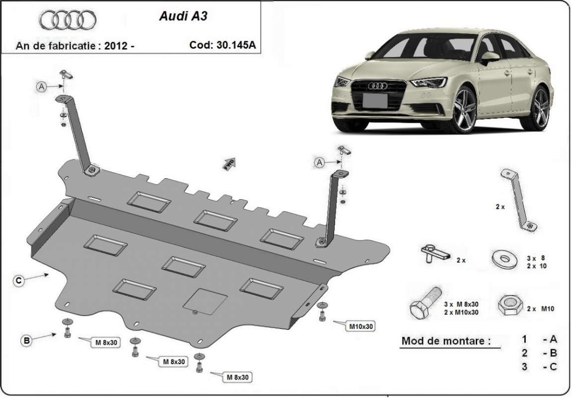 Voor de bescherming van: motor, versnellingsbak, radiator, voorbumper De motor beschermplaat is nieuw en past perfect bij alle versies van Audi A3 geproduceerd tussen 2012 en 2020. Het heeft een opening voor de oliecarter, dus hoeft het niet verwijderd worden bij olieverversing. Gemaakt van 2 mm dikke Staalplaat. Schroeven, moeren, alle bevestigingsaccessoires zijn inbegrepen. Alle carterbeschermplaten zijn poedergecoat, om corrosie te vermijden. De buitenkant van de carterbeschermplaten heeft staalversterkingen, waardoor de weerstand tegen impact wordt verhoogd. |