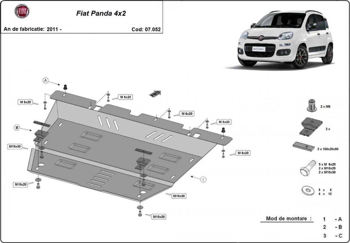 Motor, Versnellingsbak en Radiator Beschermplaat voor Fiat Panda 4x2 (2011-2026)