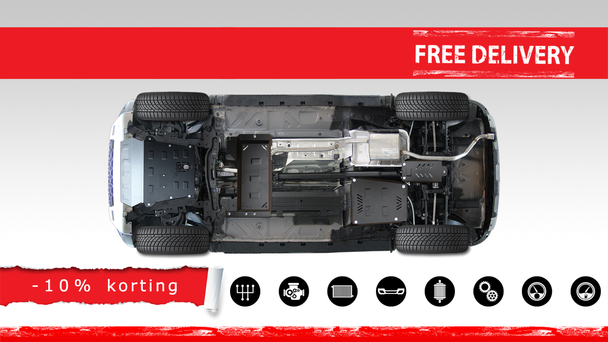 | Het monteren van de carterbeschermplaat eist geen wijzigingen aan de voertuigstructuur. |