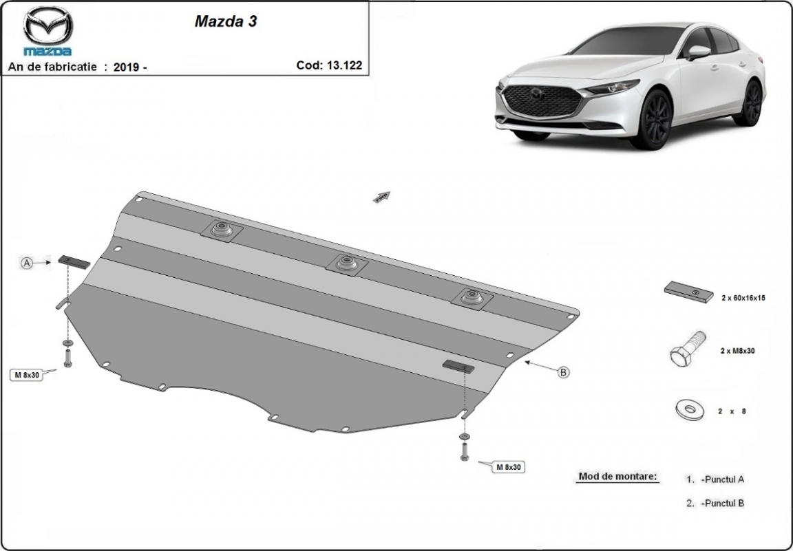 Voor de bescherming van: motor, versnellingsbak De motor beschermplaat is nieuw en past perfect bij alle versies van Mazda 3 geproduceerd tussen 2019 en 2026. Gemaakt van 2 mm dikke Staalplaat. Schroeven, moeren, alle bevestigingsaccessoires zijn inbegrepen. Alle carterbeschermplaten zijn poedergecoat, om corrosie te vermijden. De buitenkant van de carterbeschermplaten heeft staalversterkingen, waardoor de weerstand tegen impact wordt verhoogd. |