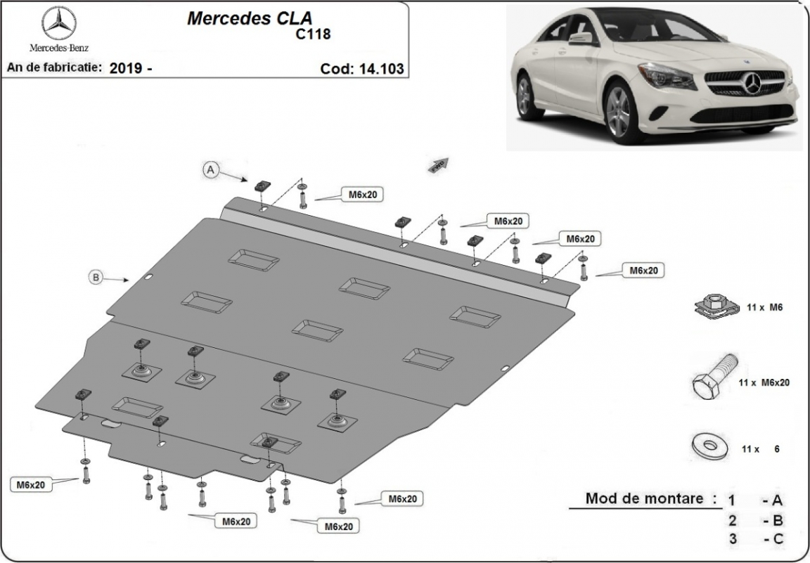 Voor de bescherming van: motor, versnellingsbak, radiator De motor beschermplaat is nieuw en past perfect bij alle versies van Mercedes CLA C118 geproduceerd tussen 2019 en 2026. Gemaakt van 2 mm dikke Staalplaat. Schroeven, moeren, alle bevestigingsaccessoires zijn inbegrepen. Alle carterbeschermplaten zijn poedergecoat, om corrosie te vermijden. De buitenkant van de carterbeschermplaten heeft staalversterkingen, waardoor de weerstand tegen impact wordt verhoogd. |