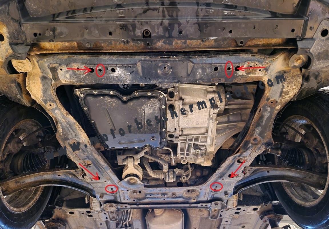 | Het monteren van de carterbeschermplaat eist geen wijzigingen aan de voertuigstructuur. |