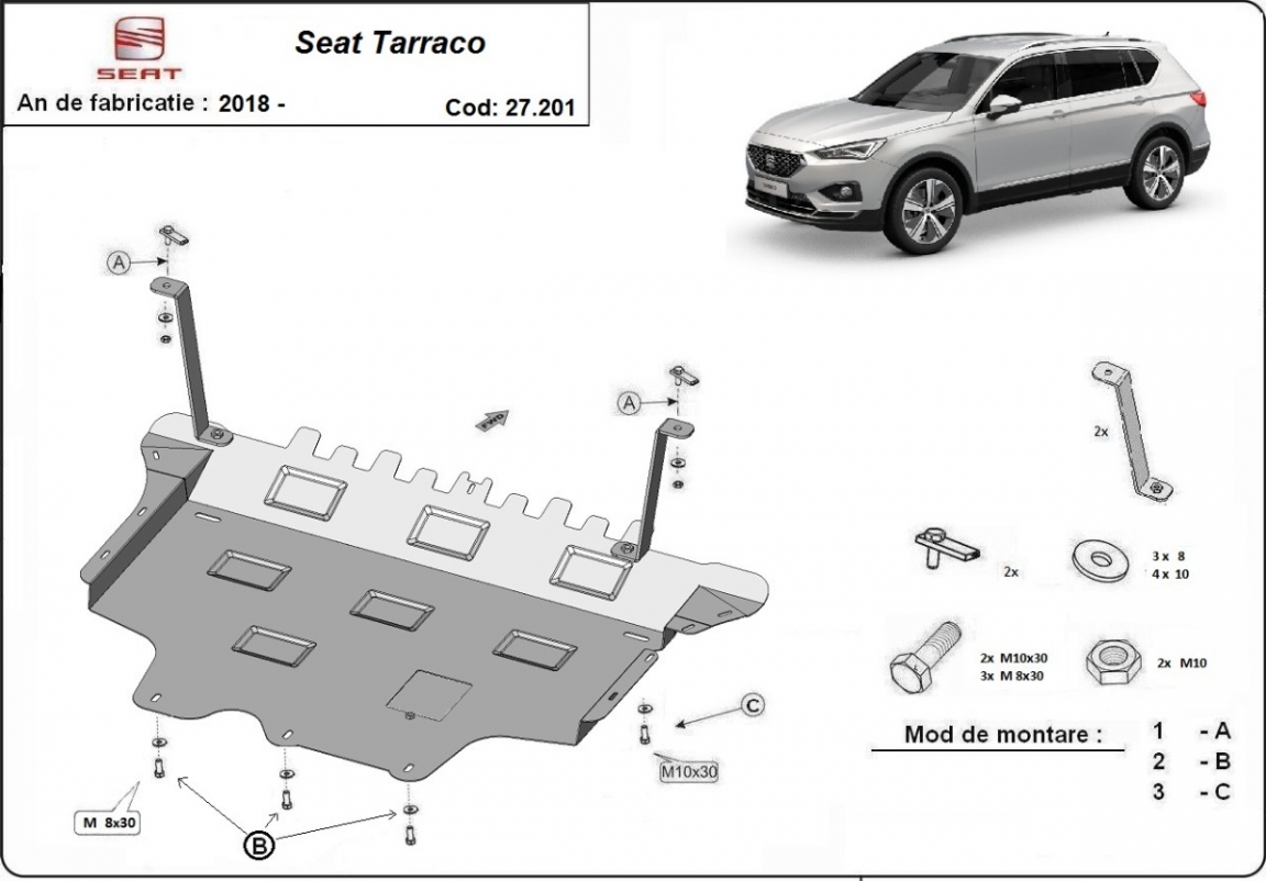 Voor de bescherming van: motor, versnellingsbak, radiator, voorbumper De motor beschermplaat is nieuw en past perfect bij alle versies van Seat Tarraco geproduceerd tussen 2018 en 2024. Gemaakt van 2 mm dikke Staalplaat. Schroeven, moeren, alle bevestigingsaccessoires zijn inbegrepen. Alle carterbeschermplaten zijn poedergecoat, om corrosie te vermijden. De buitenkant van de carterbeschermplaten heeft staalversterkingen, waardoor de weerstand tegen impact wordt verhoogd. |
