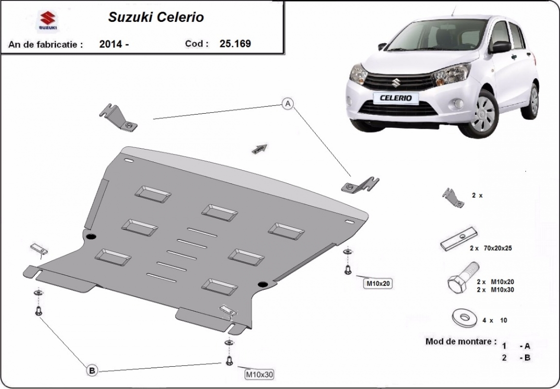 Voor de bescherming van: motor, versnellingsbak, radiator, voorbumper De motor beschermplaat is nieuw en past perfect bij alle versies van Suzuki Celerio geproduceerd tussen 2014 en 2026. Gemaakt van 2 mm dikke Staalplaat. Schroeven, moeren, alle bevestigingsaccessoires zijn inbegrepen. Alle carterbeschermplaten zijn poedergecoat, om corrosie te vermijden. De buitenkant van de carterbeschermplaten heeft staalversterkingen, waardoor de weerstand tegen impact wordt verhoogd. |