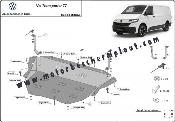 Motor, Versnellingsbak en Radiator gegalvaniseerd staal Beschermplaat voor Volkswagen Transporter T7 (2023-2025)