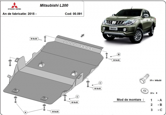 Stalen motor-, versnellingsbak- en differentieel beschermplaat voor Mitsubishi L200 (2015-2026)